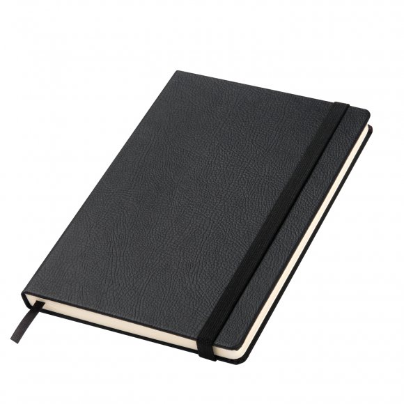 Ежедневники Chameleon – это качество, стиль и возможность для оригинальной персонализации: при нанесении логотипа методом лазерной гравировки верхнее покрытие обложки окрашивается в базовый цвет. Лого, нанесенное на угольно-черную обложку, окрасится в контрастный оранжевый. Жесткая обложка аксессуара имеет матовую поверхность, качественно стилизованную под натуральную кожу. Тиснение мелким рисунком выглядит элегантно и импозантно, оно обрамляется резинкой и атласным ляссе черного цвета. Завершает композицию светло-кремовый цвет матового форзаца и нахзаца, страниц из гладкого шелковистого офсета и гладкого матового среза.